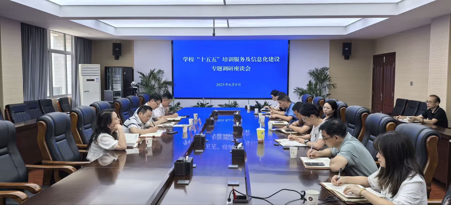 2025年6月9日下午,学校在明正楼501会议室召开“十五五”培训服务及信息化建设专题调研座谈会,会议由学校副校长伍俊晖主持,副校长梁小利出席会议,党政办、人事部、宣统部、教务处、学保部、科研处、规划处、财务处、合作处、总务处、图信中心部门负责人、二级院部行政负责人参加会议。