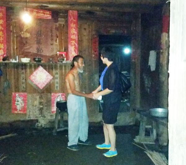 因为大山上信号不好,没有提前得知我们要来的欧阳爷爷听欧阳爸爸说我们是孙儿学校来的老师,激动不已,脱下外套,迈着蹒跚的步子在自家屋里来回走动,张罗着要给我们烧饭做菜,我们在为大山人家的淳朴和热情感动之余,婉言拒绝了老人家的好意,而爷爷一再坚持,为了不给他们家增添麻烦我们决定即刻启程下山,至此,结束了对两位同学家庭的走访。