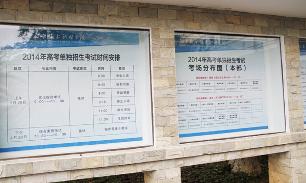 4月26日,我院2014年单独招生考试顺利举行。今年是我省全面放开高职院校单独招生考试的第一年,教育厅批准我院安全技术管理、测绘与地质工程技术、花炮生产与管理、煤矿开采技术、安全生产监测监控、市场营销、信息安全技术、工程安全评价与监理等八个专业参加单独招生,招生计划数为500人,自3月1日学院全面开展单招宣传以来,共计800余人报考我院,经过第一轮考察和筛选,最终确定了532人参加考试。目前,我院已完成了今年的单独招生计划。