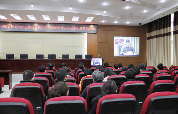 3月6日上午,2014年全省高校大学生思想政治教育工作视频会议召开。会议由省委教育工委宣传统战部副部长金望明主持。我院院长郭超、院长(主任)助理罗扬、学生处、宣传统战部、团委负责人、各系总支书记,学工办主任及全体辅导员在学院五楼视频会议室参加了会议。