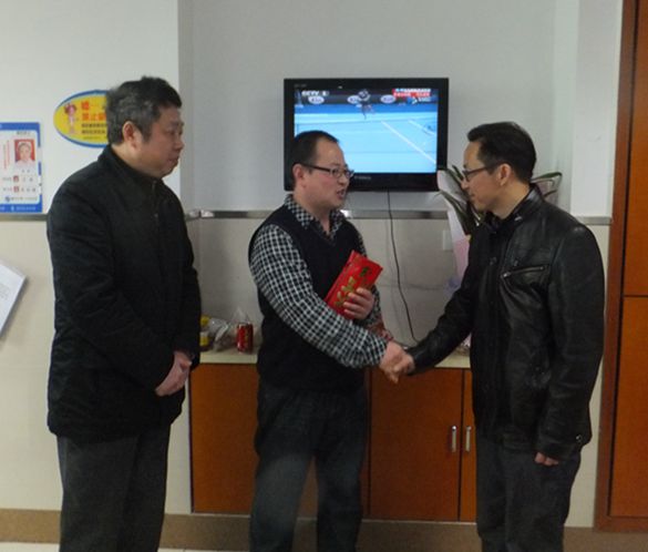 学院领导给学生家长送上全院师生为王润婧同学募捐到的爱心款