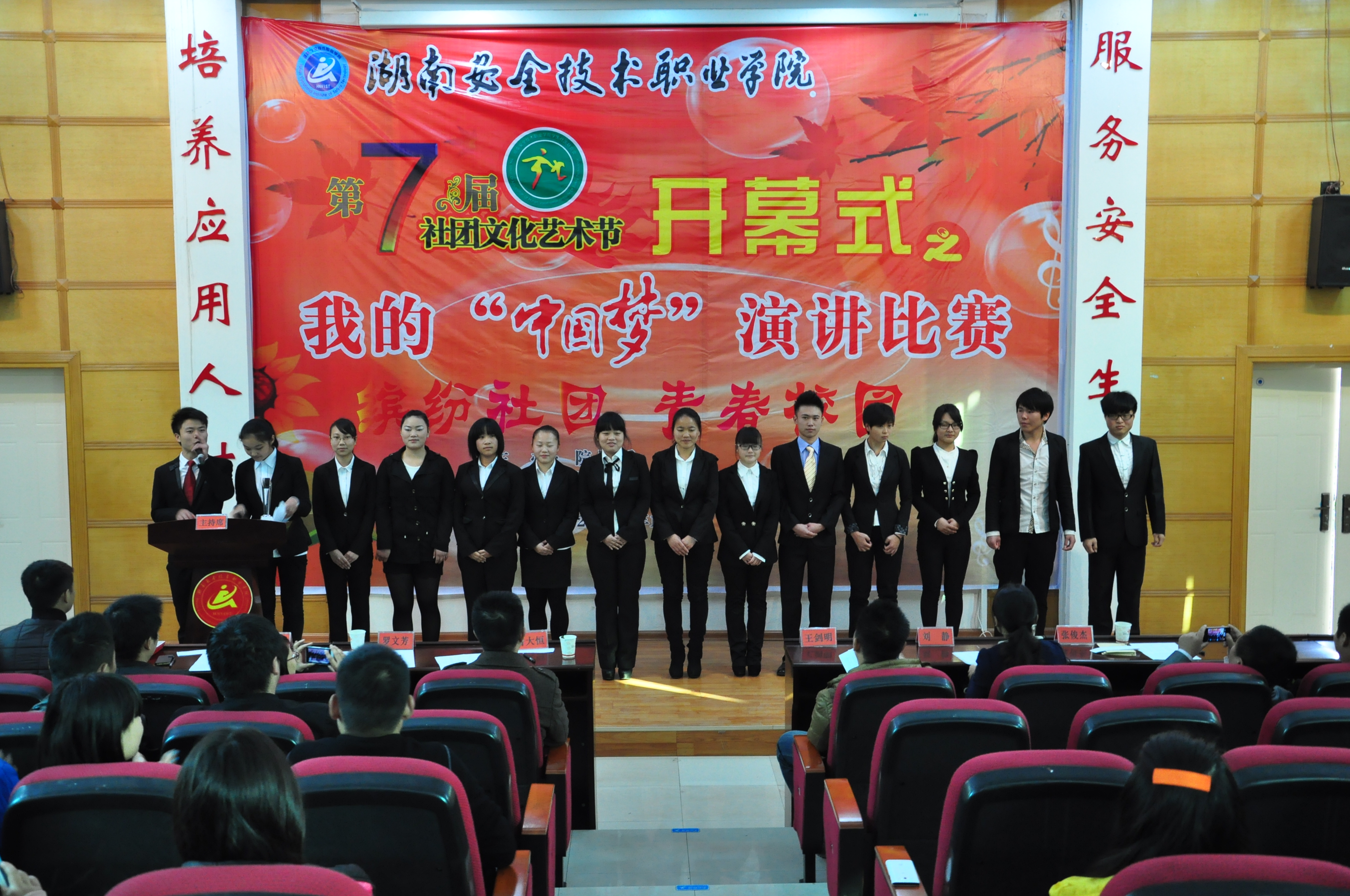 为向全院师生展示我院学生社团风采,让2013级新生充分了解我院现有学生社团情况,给他们提供施展才华与张扬个性的舞台,院团委于12月6日14:00在学术报告厅举行了我院第七届社团文化艺术节开幕式暨“我的中国梦”演讲比赛。参加开幕式的有学院党委委员、组织人事处处长曾大恒教授、招生与就业处罗文芳处长、学生与保卫工作处王剑明处长、基础课部人文教研室刘静主任、院团委专职副书记曹强胜老师、演讲与口才协会名誉会长张俊杰先生及院团委、学生会负责人、学院现有18个社团全体人员。本次开幕式由院团委专职副书记曹强胜老师主持。