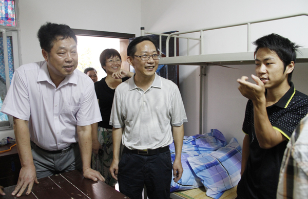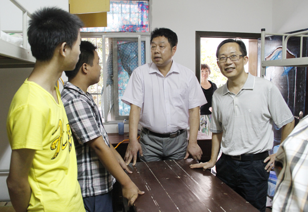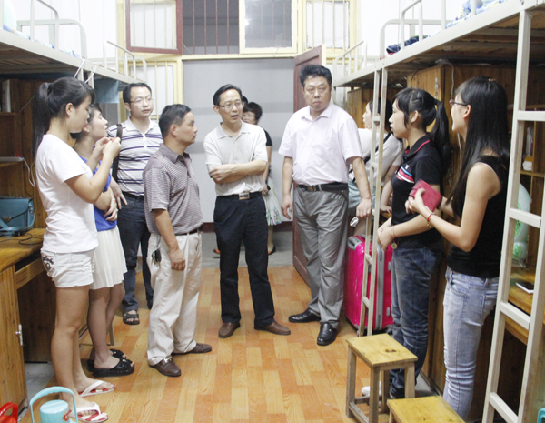 9月1日下午,党委书记李海涛、院长郭超、副院长王林、院长助理莫文娟在后勤处等部门主要负责人的陪同下来到2013级新生宿舍,看望新同学,送来了学院的关怀。