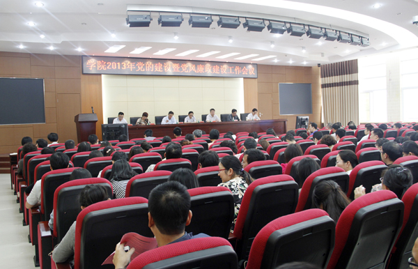 5月20日下午,我院召开2013年党的建设暨党风廉政建设工作会议。会议传达了全国安全监管监察系统党风廉政建设工作会议和第十九次全省高校党的建设工作会议精神,系统总结我院2012年党建工作和党风廉政建设工作的成绩和经验,研究部署2013年工作任务和目标。院党委书记李海涛,院长郭超,副院长龚声武、王林,院长助理莫文娟、刘殿武,院党委成员、组织人事处处长曾大恒出席会议。在会上,郭超院长作了题为《认真学习贯彻党的十八大精神,深入推进学院党风廉政建设和反腐败工作》的报告。李海涛书记围绕“服务学院(中心)改革发展,全面加强党建和党风廉政建设”的主题作了重要讲话。会议由龚声武副院长主持,全体教职工党员和各部门负责人参加了会议。
