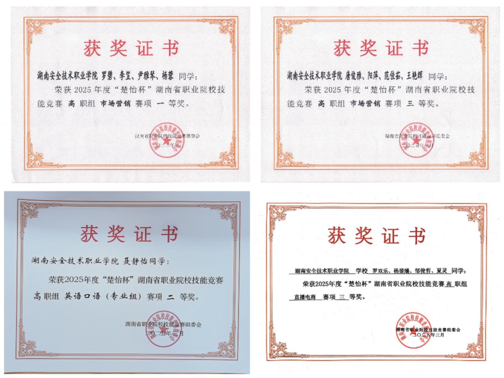 在3月23日结束的2025年度“楚怡杯”湖南省职业院校技能竞赛中,我院黄丽娟、严品老师指导的罗碧、李笠、尹雅琴、杨蓉团队获“市场营销”赛项一等奖。