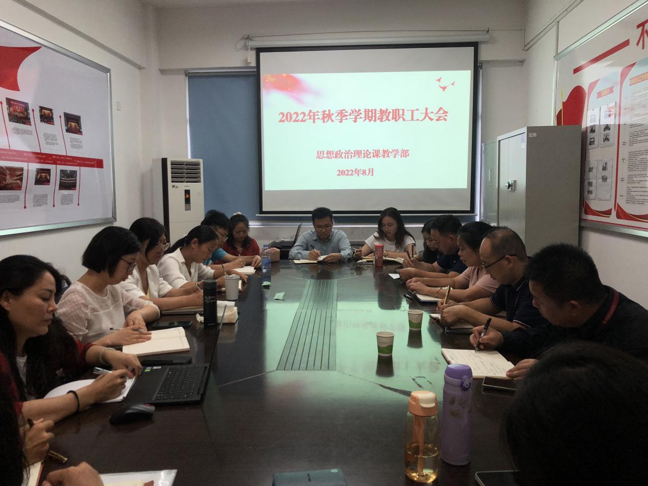 凡事预则立,不预则废。8月30日下午,思想政治理论课教学部在明正楼614召开了2022年秋季学期教职工大会。学院(中心)党委委员、纪委书记李国华、思政课部党支部书记王剑明、思政课部主任刘瑛、副主任刘建仁及全体教职工参加会议。会议由刘瑛主持。
