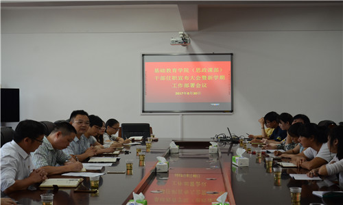 2017年8月30日上午,基础教育学院(思政课部)在明正楼501会议室召开干部任职宣布大会暨新学期工作部署会。校(中心)党委委员曾大恒副主任、学校教务处梁瑞升处长出席会议,基础教育学院(思政课部)全体教职工参加会议。