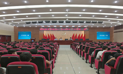 2017年9月6日下午四时,基础教育学院(思政课部)2016级五年制学生2017年秋季新学期“开学第一课”在图书馆五楼会议室隆重开讲。学校(中心)党委委员曾大恒副主任、基础教育学院(思政课部)党务负责人徐慰慰、行政负责人付正光、学院部分老师及全体2016级学生近三百人参加本次活动,徐慰慰主持开讲仪式。