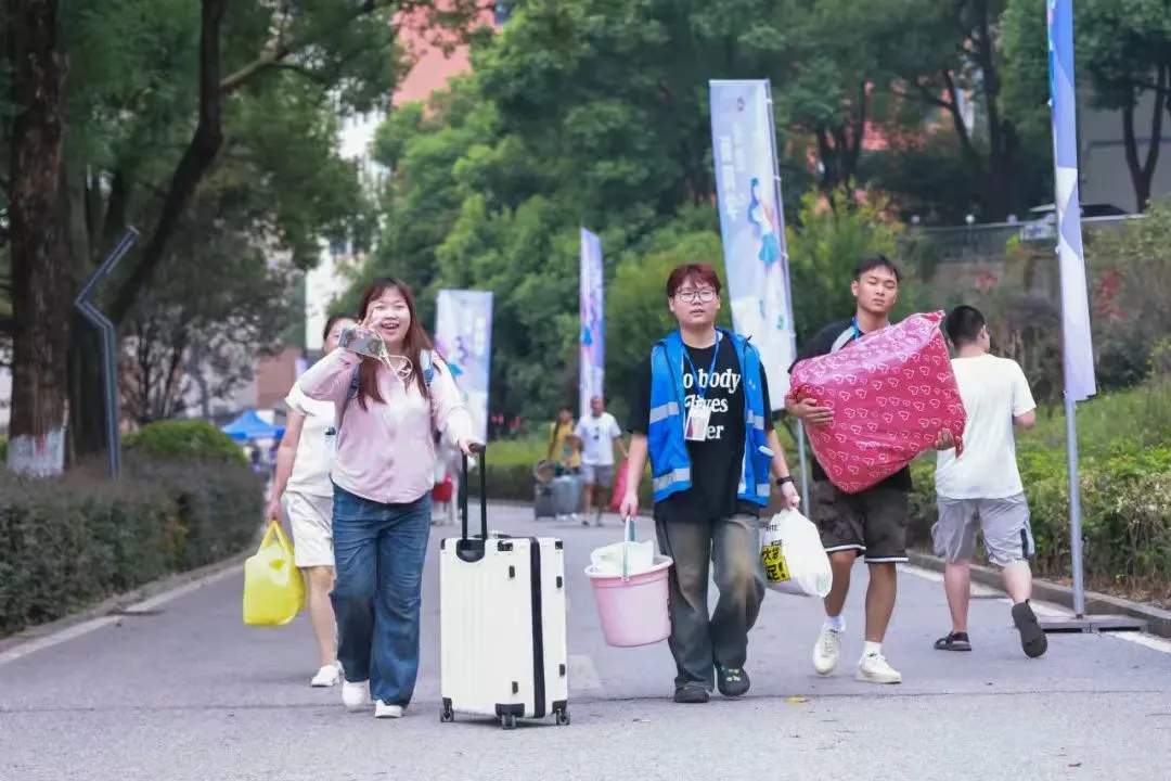 新生报到期间,学校开放了机房、实验室等区域,方便学生及家长参观,同时安排专人解答有关实验、实习等问题。学校设置了多个家长休息区,校内多处设置了指示牌,方便新生及家长了解报到线路。迎新现场,随处可见的“蓝马甲”“红马甲”及其他工作人员们随时待命,提供信息咨询、主动搬运行李等服务。学校还贴心地为报到两天过生日的新生,送去了学校定制的生日礼物。一系列举措,让初来乍到的新生,感受到家的温暖。